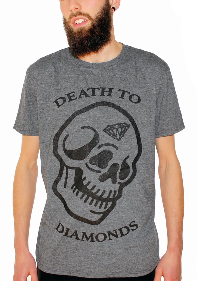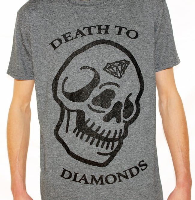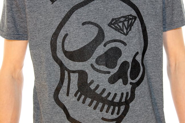 Dark Heather Gildan Softstyle Tshirt with water based black full size print.